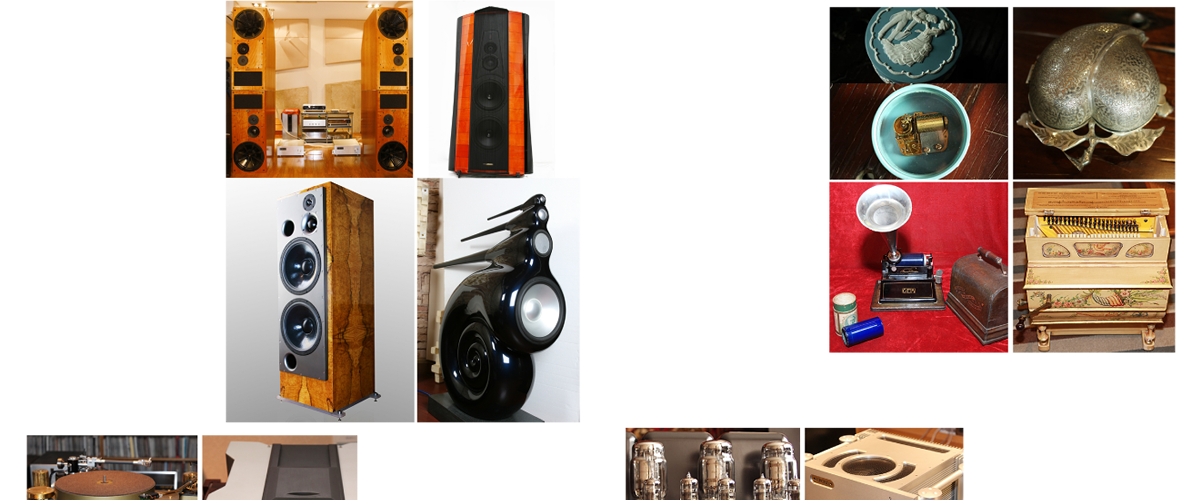 世界發燒音響博物館的館藏器材跨越了300多年的音響史,從音響鼻祖的音樂盒到擁有近百年歷史的留聲機,再到LP唱盤、膽機及現在的數字音響,博物館奏起了一首恢宏厚重的音響史詩。從LP到CD唱片再到影碟,古今中外、古典流行、精品稀品,首版再版發燒版,不同規格、不同風格的碟片數不勝數;就連線材、機架等附件也是件件精品,種類相當齊全。
